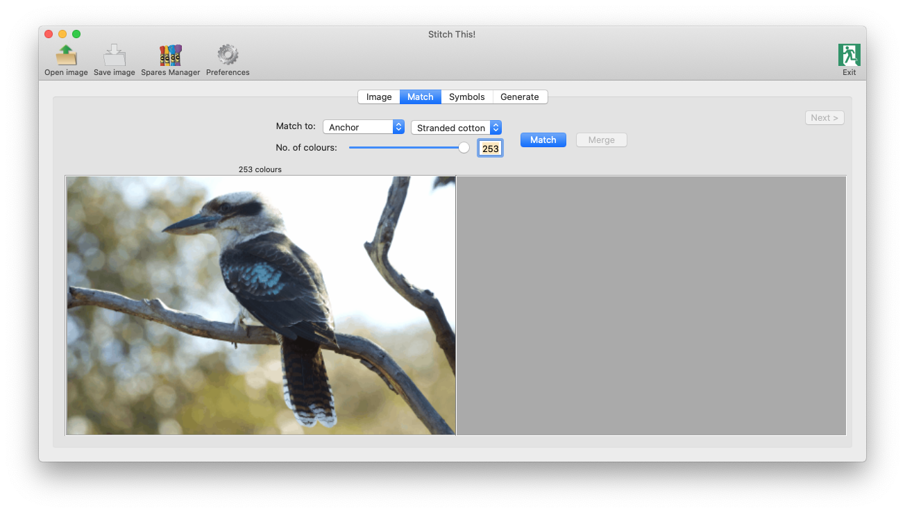To the right will appear the image with colours from that thread range, and the number of colours (or possibly less) that you have chosen: