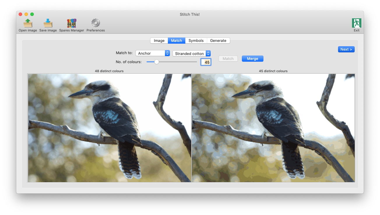 The quantity could be a few less than the value you supplied, because more than one shade from the image could be closest match to the same thread colour.